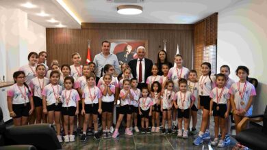 Akçay Cimnastik Kulübü, Güzelyurt Belediye Başkanı Mahmut Özçınar’ı ziyaret etti