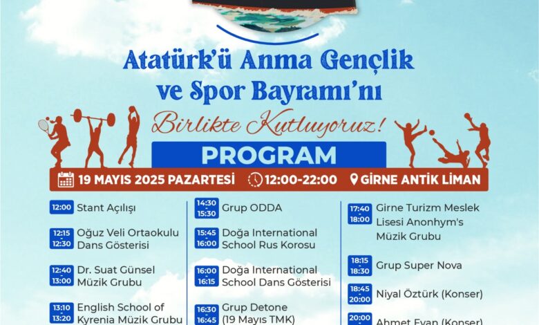 Girne Belediyesi, 19 Mayıs Atatürk’ü Anma, Gençlik ve Spor Bayramı dolayısıyla Girne Antik Liman’da kutlama etkinliği düzenliyor.