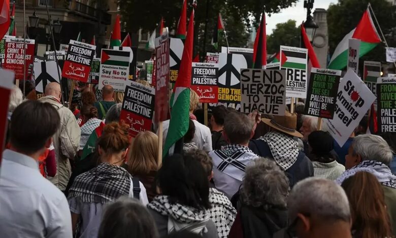 İngiltere’nin başkenti Londra’da binlerce kişi, İsrail Cumhurbaşkanı Isaac Herzog’un ülkeye yapacağı ziyareti protesto etti.