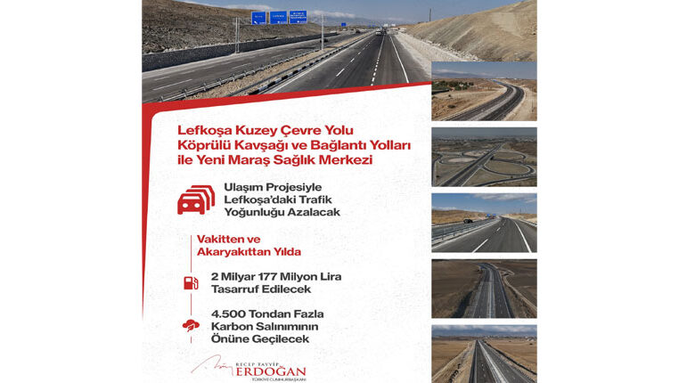 “Kıbrıs Türkü’yle birlikte yazdığımız barış ve özgürlük destanının 51’inci yıl dönümünde, Lefkoşa Kuzey Çevre Yolu Köprülü Kavşağı ve Bağlantı Yolları ile Yeni Maraş Sağlık Merkezi’nin açılışını yaptık. Bu güzide projelerde emeği geçenlere kalpten teşekkür ediyorum. Hayırlı olsun.” ifadelerini kullanan Erdoğan’ın paylaşımında açılışlara ilişkin bilgiler de yer aldı.
