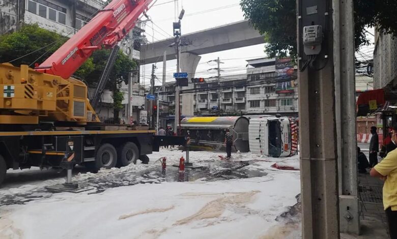 Tayland’ın başkenti Bangkok’ta dün gece saatlerinde konteyner yüklü bir tır ile akaryakıt tankeri kazaya karıştı. Kaza sonucu akaryakıt tankerindeki 16 bin litre benzinden yaklaşık 600 litresi yola döküldü.
