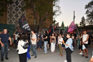 Dünya Sendikalar Federasyonu (DSF) üyesi Kıbrıslı Türk ve Kıbrıslı Rum sendikalar ile İki Toplumlu Barış İnisiyatifi – Birleşik Kıbrıs tarafından organize edilen etkinlik, saat 19.00’da Dayanışma Evi önünde yapıldı.