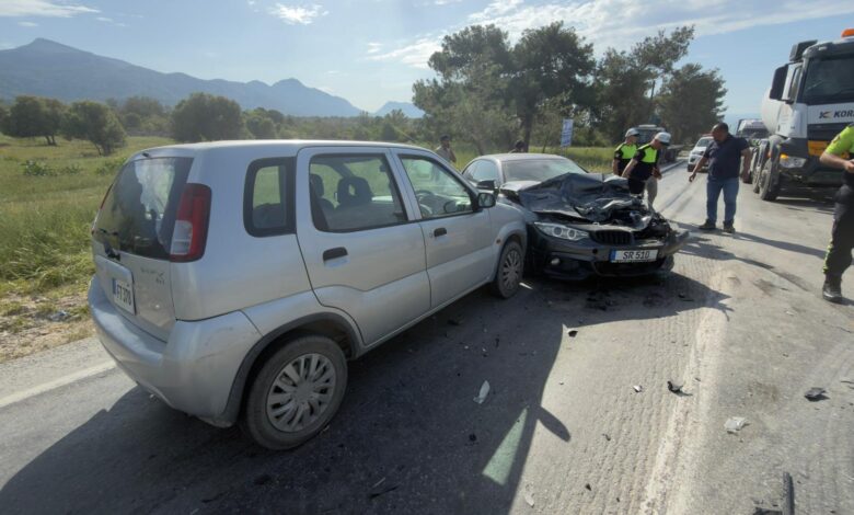 Girne kazasına bağlı Arapköy’ün girişinde meydana gelen trafik kazasında iki araç kafa kafaya çarpıştı.