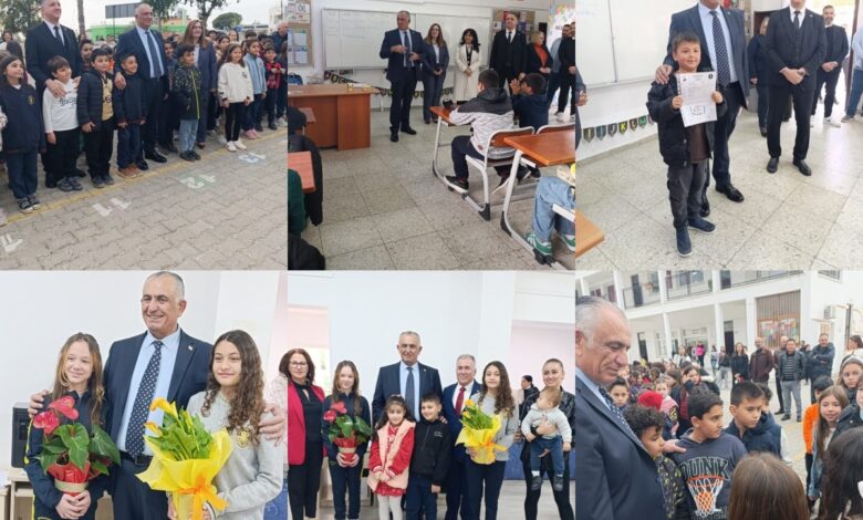 Milli Eğitim Bakanı Nazım Çavuşoğlu, İskele’de Şehit İlker Karter İlkokulu ile Bekirpaşa Lisesi’nde karne dağıtım törenlerine katıldı.