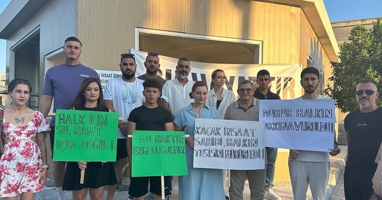 Protesto sırasında yapılan açıklamada, Lefkoşa Kaymakamı’nın, tesisin inşaat izni olmadığı gerekçesiyle projeyi durdurduğu, ancak kendisine ait olduğu iddia edilen ve Girne Kaymakamlığı tarafından mühürlenmiş bir izinsiz yapının da bulunduğu iddia edildi.