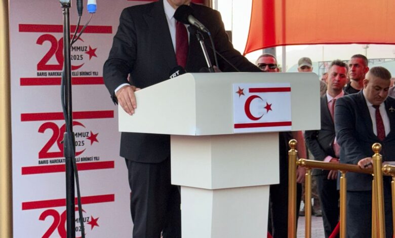 Cumhurbaşkanı Ersin Tatar, 20 Temmuz Barış ve Özgürlük Bayramı’nın 51. Yıl Dönümü Kutlama Etkinlikleri çerçevesinde Dr. Fazıl Küçük Bulvarı’ndaki Resmi Geçit Töreni’ninde konuştu.