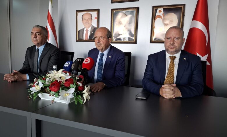Tatar, şu sıralar Ercan Havaalanı’nda düzenlenen basın toplantısında temaslarını değerlendiriyor.