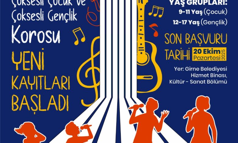 Girne Belediyesi’nin “Çok Sesli Çocuk” ve “Çok Sesli Gençlik Korosu” için yeni dönem kayıtları devam ediyor. Koroya katılmak isteyenler 20 Ekim Pazartesi gününe kadar başvuruda bulunabilir.