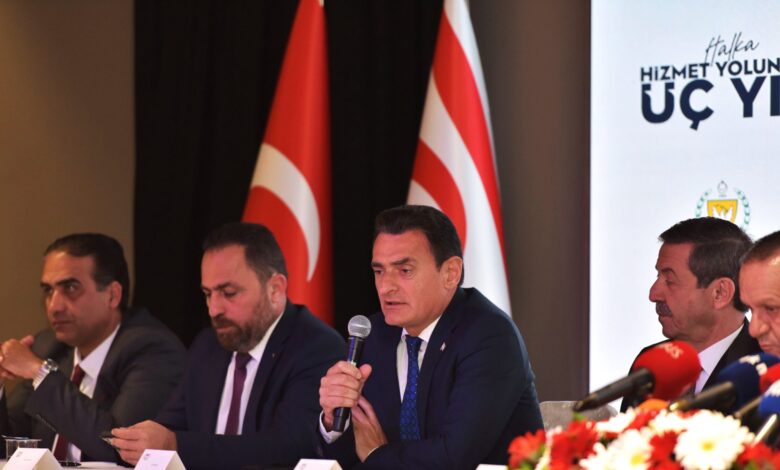 Hükümetin 2022–2025 dönemindeki icraatlarının kamuoyu ile paylaşıldığı “Halka Hizmet Yolunda Üç Yıl” başlıklı basın toplantısında, Başbakan Ünal Üstel ve bakanlar basın mensuplarının sorularını yanıtladı.
