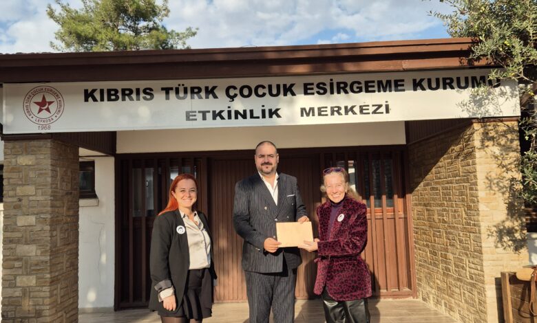 Kıbrıs Türk Anne ve Çocuk Sağlığı Derneği Başkanı Mine Bahçeci, Kıbrıs Türk Çocuk Esirgeme Kurumu yararına düzenledikleri etkinliğin gelirini Kurum Müdürü Ali Birsen’e teslim etti.