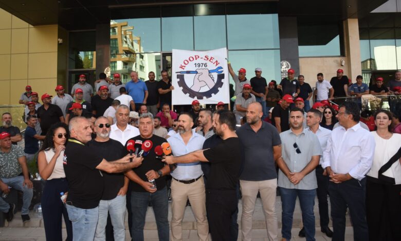 Lefkoşa, 12 Ağustos 25 (TAK): Kooperatif Görevlileri Sendikası (KOOP-SEN), Kıbrıs Türk Kooperatif Merkez Bankası Ltd. iştiraklerinden Koop-Süt, Zirai Levazım Kooperatifi ve Binboğa Yem Kooperatifi’nde çalışanların temmuz ayı maaşlarının ödenmemesi nedeniyle süresiz greve gitti.