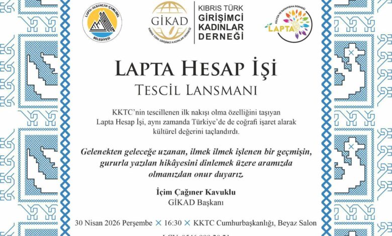 Lapta Hesap İşi Lansmanı, 30 Nisan 2026 Perşembe günü saat 16.30’da KKTC Cumhurbaşkanlığı Beyaz Salon’da gerçekleştirilecek.