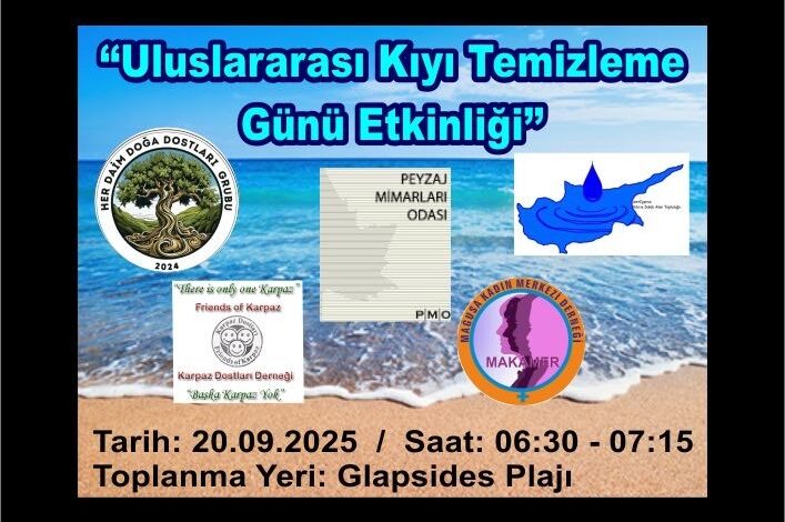 Her Daim Doğa Dostları Grubu önderliğinde Mağusa Kadın Merkezi Derneği, Peyzaj Mimarları Odası, Kıbrıs Sulak Alan Topluluğu ve Karpaz Dostları Derneği’nin katılımlarıyla kıyı temizliği yapılacak.