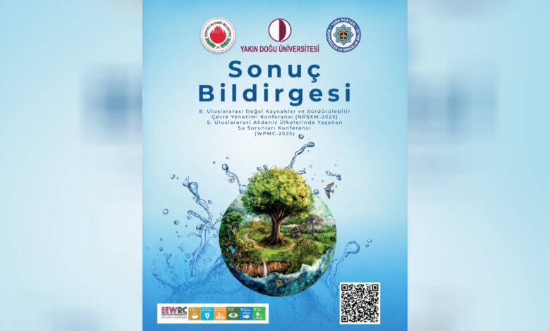 Yakın Doğu Üniversitesi, Gönyeli–Alayköy Belediyesi ve Türk Dünyası Mühendisler ve Mimarlar Birliği iş birliğiyle aralık ayında düzenlenen 5. Uluslararası Akdeniz Ülkelerinde Yaşanan Su Sorunları Konferansı (WPMC2025) ile 8. Uluslararası Doğal Kaynaklar ve Sürdürülebilir Çevre Yönetimi Konferansı (NRSEM2025) Sonuç Bildirgesi kamuoyuyla paylaşıldı.