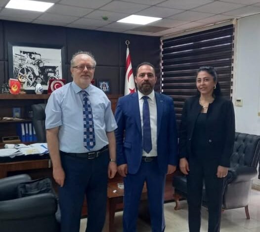 Tarım ve Doğal Kaynaklar Bakanı Hüseyin Çavuş, Onbeş Kasım Kıbrıs Üniversitesi (OKKÜ) Mühendislik Fakültesi Dekanı Yrd. Doç. Dr. Refet Ramiz’i kabul etti.