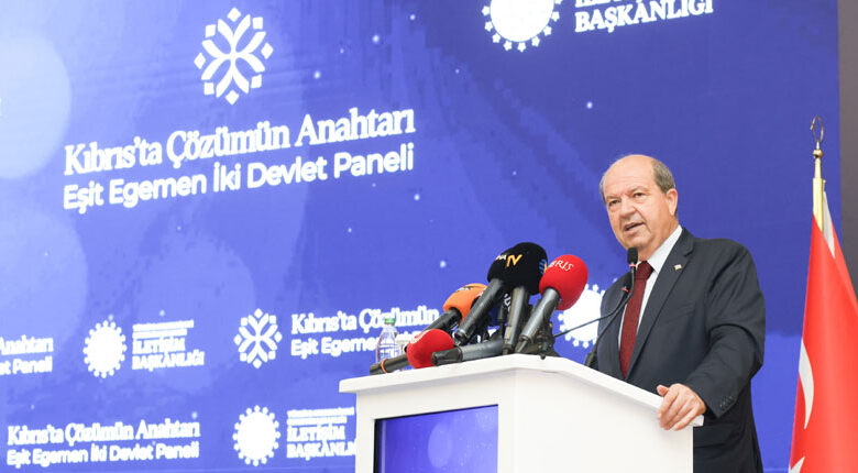 Cumhurbaşkanı Ersin Tatar, Türkiye Cumhuriyeti Cumhurbaşkanlığı İletişim Başkanlığı tarafından düzenlenen “Kıbrıs’ta Çözümün Anahtarı: Eşit Egemen İki Devlet” panelinde konuşma yaptı.