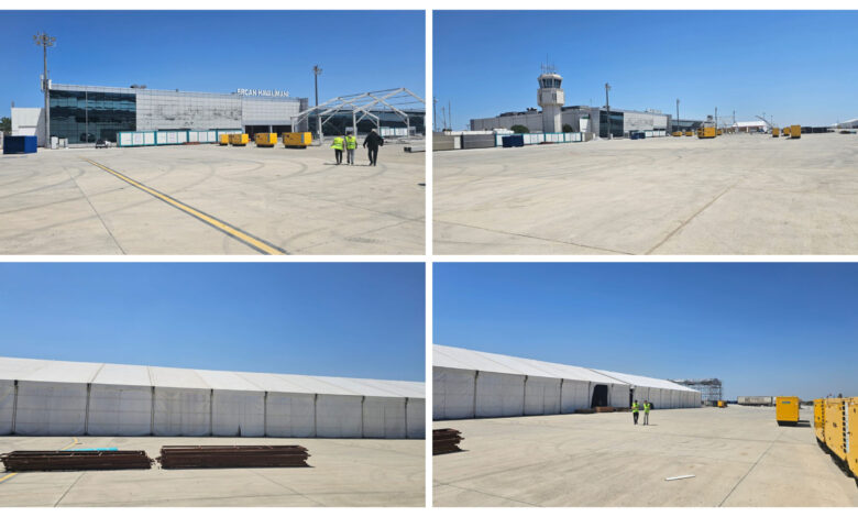 100’lerce kişiden oluşan ekip Ercan Havaalanı Eski Terminal Alanı’nda hazırlıkları titizlikle yürütüyor.