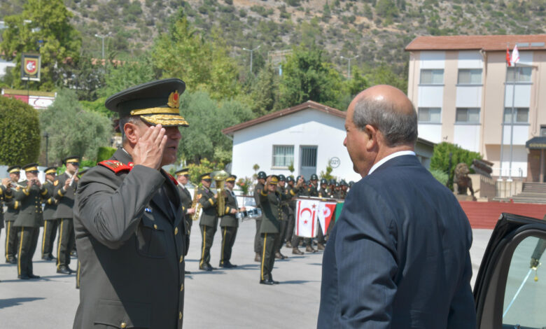 Güvenlik Kuvvetleri Komutanlığı’nın Boğaz’daki karargâhını ziyaret eden Cumhurbaşkanı Tatar, burada Güvenlik Kuvvetleri Komutanı Tümgeneral İlker Görgülü tarafından askeri törenle karşılandı.