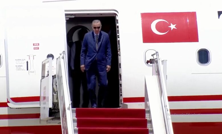 Cumhurbaşkanı Erdoğan 16.00 sıralarında “TUR” uçağıyla Ercan Havalimanı’na iniş yaptı.