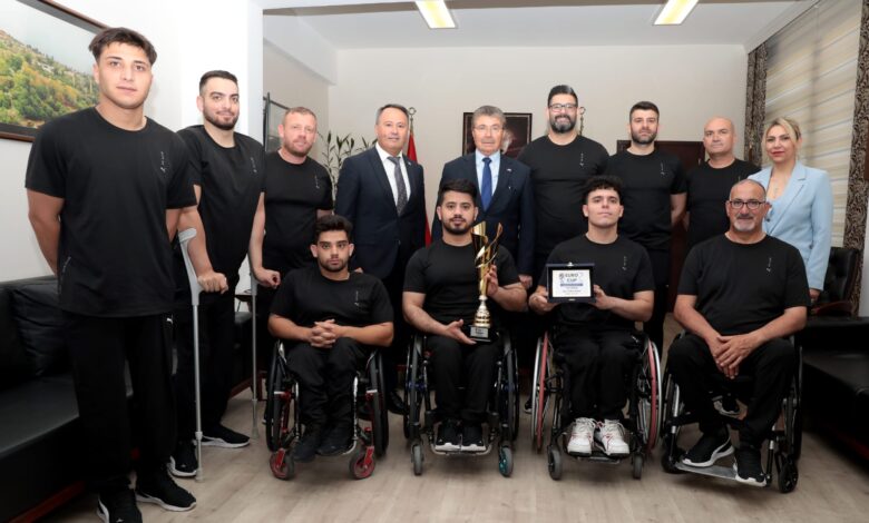 Başbakan Ünal Üstel, Avrupa Kupası 2026 ön eleme turnuvası kupasında birincilik elde eden Vakıflar Tekerlekli Sandalye Basketbol takımını ve KKTC Engelliler Spor Federasyonu Başkanı Ahmet Akdeniz’i kabul etti.