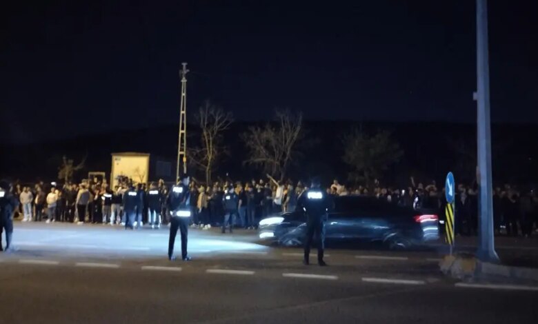 Tesis önündeki gergin bekleyiş sürerken, caddeden geçen Galatasaraylı bir sürücüye ait araç da kalabalığın tepkisiyle karşılaştı. Araya giren emniyet güçleri, araç ile taraftarlar arasında yaşanan gerginliğin büyümesini önledi.