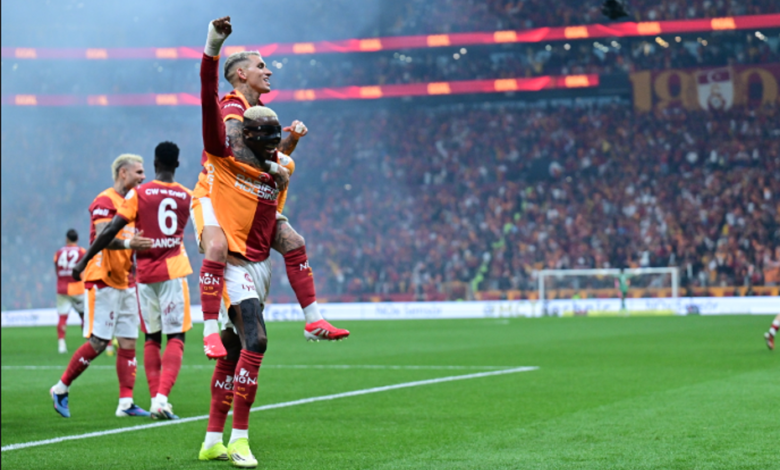 Galatasaray’da sakatlıktan kurtulan ve kolundaki özel koruma ile derbiye çıkan Victor Osimhen gecenin yıldızı oldu.