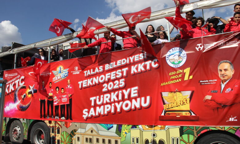 KKTC’de yapılan TEKNOFEST’in dünya ve Türkiye açısından çok anlamlı olduğunu belirten Yalçın, “Bizim açımızdan daha anlamlı oldu. Talas İnovasyon Merkezi’nde yetişen çocuklarımız Türkiye birinciliği aldılar. İnovasyon merkezimiz 2 yıldan beri görev yapıyor. Çok sayıda yetenekli öğrenciyi teknik bilişim ile bir araya getirdik. Türkiye genelinde bu kadar proje arasında birinci olmak bizi onurlandırdı.” diye konuştu.