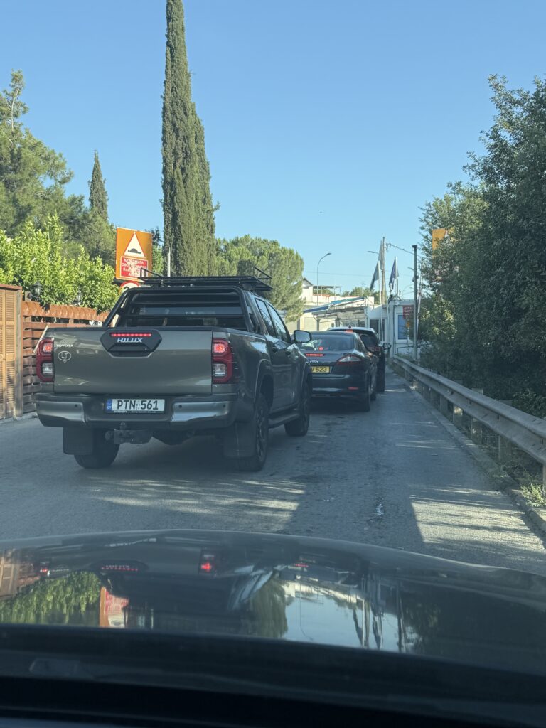 Hemen fark ettim ki, Rum tarafı yoğunluğa rağmen, tek şeridi açık tutmuş. Oradaki tıkanma nedeniyle kuyruk bizim tarafta bayağı uzanmış.
